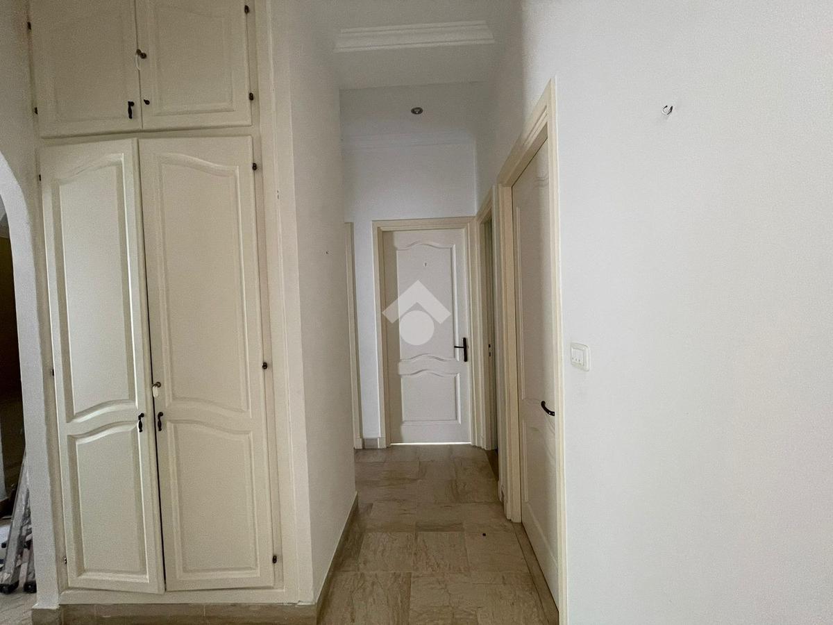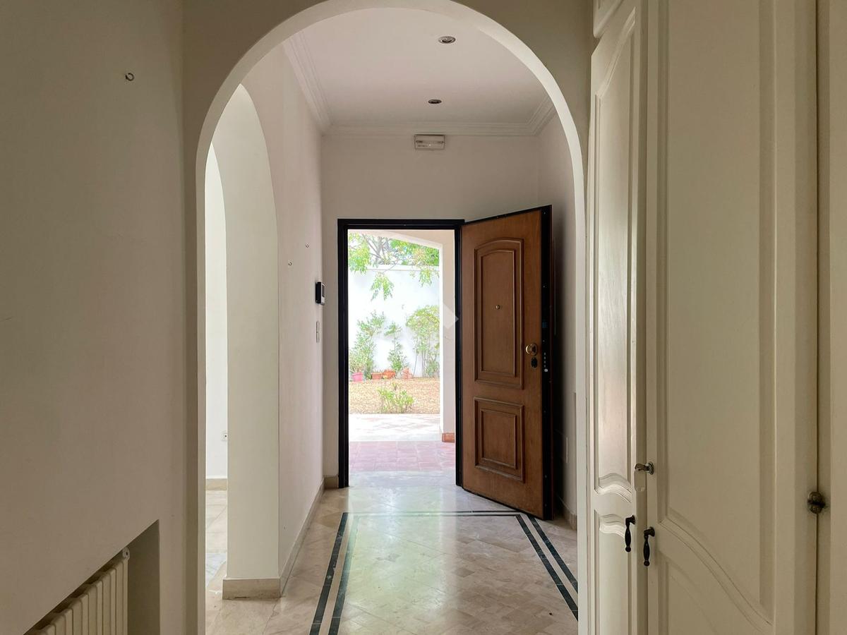 L’entrée s’ouvre sur un hall qui conduit vers un salon lumineux, grâce à son ouverture sur le jardin.